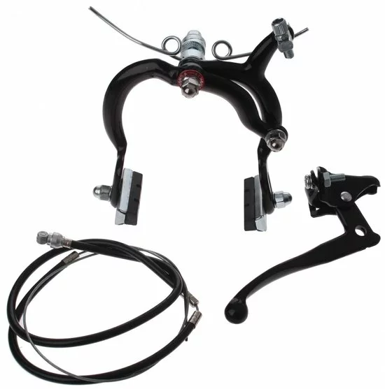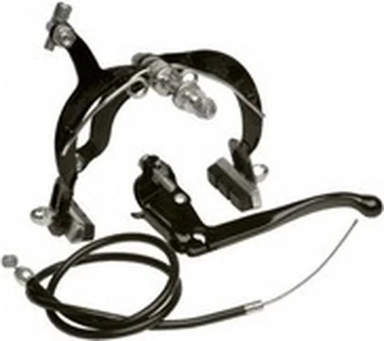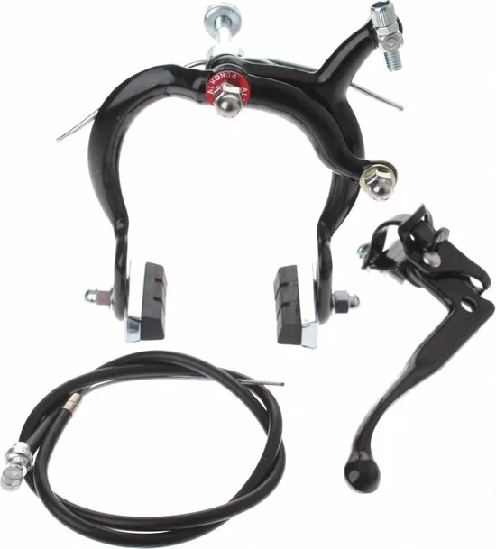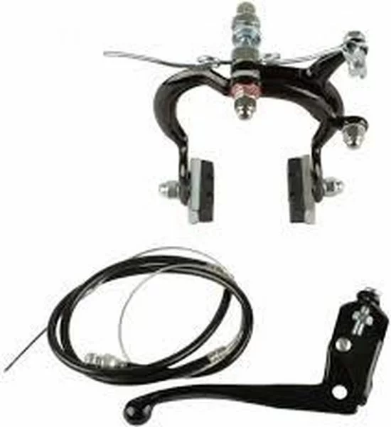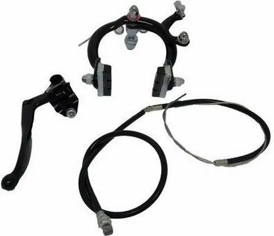 Complete aluminium achterrem inclusief remgreep, remblokken en bekabeling.