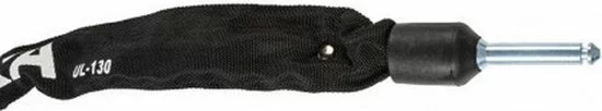 AXA ULC-130 insteekketting? De AXA ULC-130 insteekketting kan gebruikt worden in combinatie met een AXA Block XXL ringslot voor de maximale beveiliging van je fiets. De ketting beschikt over een gehard stalen plug-in pin met een dikte van 10 millimeter. Met de insteekketting bevestig je jouw fiets zeer eenvoudig aan een vast object zoals een lantaarnpaal of hek. De ketting is 130 centimeter lang en voorzien van een praktische polyester hoes. Specificaties: Kleur: zwart Materiaal kabel: staal Materiaal hoes: polyester Lengte kabel: 130 cm Dikte ketting: 5,5 mm Dikte insteekpen: 10 mm