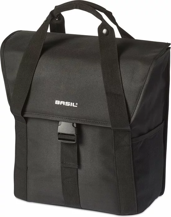 De Basil Go Solid is een enkele fietstas die goed van pas komt als je met de fiets naar werk of school gaat. Deze enkele fietstas voor achterop de fiets is gemaakt van hoogwaardig materiaal en koop je in het zwart. Verplaats je je regelmatig met de fiets en heb je daarbij altijd een heleboel spullen mee? Dan is deze oersterke Basil Go Solid tas zeker iets voor jou. De tas heeft een inhoud van maar liefst 16 liter. Daarmee is de tas uitstekend geschikt voor het vervoeren van schoolboeken, een laptop, een regenvestje, enzovoort. De fietstas beschikt over een hoofdcompartiment met aansnoerkoord. Daarmee sluit je je bagage veilig en gemakkelijk af. Verder heeft de tas dubbele elastische zijvakken en praktische handgrepen. De veiligheid op de weg wordt bevorderd door de dubbele reflecterende strepen. Je bevestigt de tas met behulp van een Hook-On systeem aan de bagagedrager van je fiets. Gebruik je de tas als schoudertas? Dan kun je dit systeem eenvoudig opbergen in het ritsvak van de tas. Ben je ook benieuwd naar de andere fietstassen van het merk Basil? Bekijk dan ons volledige aanbod. Ongetwijfeld zit er iets van jouw keuze bij. Eigenschappen: De Basil Go enkele fietstas bevestig je aan de bagagedrager van je fiets of gebruik je als handtas. De tas is gemaakt van kunststof en heeft een inhoud van maar liefst 16 liter. De Basil Go enkele fietstas is een onmisbaar accessoire voor wanneer je naar school of werk fietst. Dankzij de dubbele reflectoren bevorder je de veiligheid onderweg.
