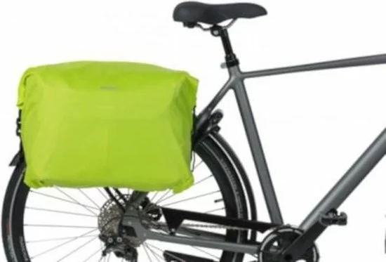 De Basil Keep Dry & Clean regenhoes is de perfecte accessoire voor jouw fietstas! De speciaal ontworpen horizontale regenhoes beschermt de gehele tas tegen regen en opvattend vuil. Dit model regenhoes is horizontaal en kan daarom goed gecombineerd worden met bijvoorbeeld laptoptassen, messengertassen en fietsschoudertassen. Aan de achterzijde is er rekening gehouden met het Hook- On systeem, zodat je de tas gemakkelijk aan je bagagedrager kunt bevestigen. Deze haken worden door een flap afgeschermd tijdens het fietsen. Zo voorkomt de regenhoes dat er geen regen of vuil op je tas komt. Ook niet aan de achterzijde! En dat is ook fijn wanneer je de tas na je fietstocht mee wilt nemen. De hoes is verstelbaar met een roltopsluiting die je aan de zijkanten met een kliksluiting sluit. Zo pas je de regenhoes helemaal aan jouw tas aan. De horizontale regenhoes is gemaakt in een opvallende neongele kleur, zodat je overdag tijdens een regenbui beter opvalt. Dankzij de reflectie op drie zijden val je in het donker beter op. De Basil Keep Dry & Clean regenhoes horizontaal wordt inclusief een handig opbergzakje geleverd. Eigenschappen: Horizontale regenhoes geschikt voor bijvoorbeeld laptoptassen, messengerbags of fietsschoudertassen. Waterdicht en beschermt de gehele tas tegen regen en opspattend vuil. Gemaakt van 600D sterk polyester. Door de neongele kleur en de reflectie val je op in het verkeer.