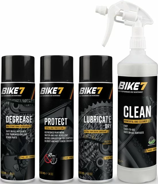 Je fiets na elke tocht schoonmaken kan een vervelende opdracht lijken. Maar met de juiste producten doe je het in een handomdraai en beleef je zelfs plezier aan het reinigen van je fiets. Een goed onderhoud is immers essentieel om hem in optimale conditie te houden. Bike7 Clean is speciaal ontwikkeld om het je zo gemakkelijk mogelijk te maken. Je merkt meteen het verschil!