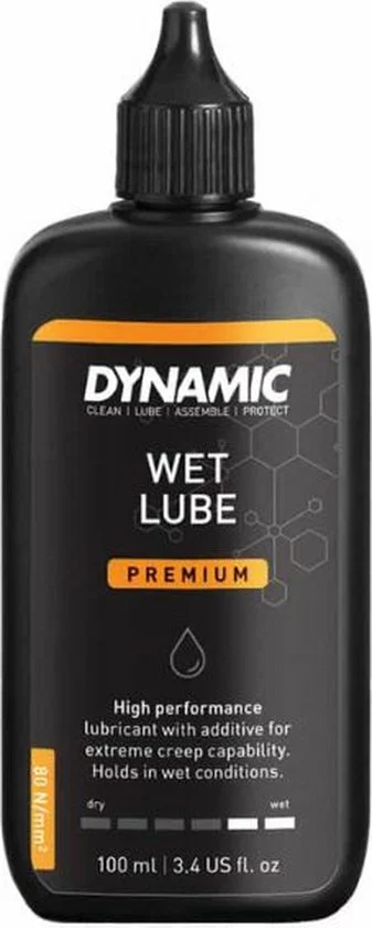 Dit smeermiddel is speciaal ontwikkeld om lang mee te gaan in vochtige en modderige omstandigheden. Voor het beste resultaat gebruik je Dynamic Wet lube na het reinigen van je fietsketting met Dynamic Chain Cleaner. Breng de olie vervolgens druppelgewijs aan op de schakels van de ketting en/of onderdelen.