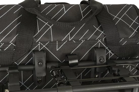 De Fastrider Luxe Shopper Enkele Fietstas beschikt over de KLICKfix E-Bike Vario hooks. Deze haken zijn speciaal gemaakt om beter tussen de kleine ruimte tussen bagagedrager en de accu te passen. Controleer wel of er voldoende ruimte zitten tussen de bagagedrager en accu, de KLICKfix E-Bike Vario Hooks hebben een maximale dikte op het dikste punt van 5mm. Verder is de hoogte 2,5 cm en is hij geschikt voor een diameter van 8-16mm.