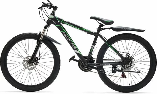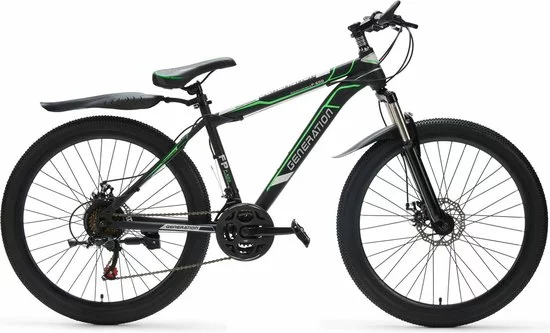 Generation P-600 mountainbike 26 inch is een fantastische fiets voor kinderen van 10 tot 14 jaar. De Generation mountainbike 26 inch is voorzien van 21 versnellingen en schijfremmen. Het zadel is in de kleuren van de fiets en comfortabel gevormd net als de handvaten die een aangename grip bieden. Het zadel van de Generation mountainbike 26 inch zijn te verstellen in hoogte. De voorvork is voorzien van vering.