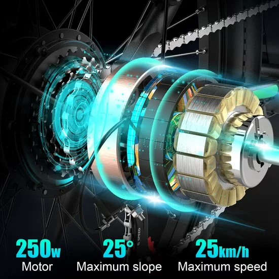Excellent performance with detachable battery – A highlight of the pedelec is our detachable 10.4 AH large capacity lithium-ion battery that ensures long-lasting performance. Powerful motor, strong support- 250 W 36 V motor- The highest speed can reach up to 25 km/h and a maximum incline of 25 degrees. In moped mode, you can easily cover a distance of 35 to 90 km. Since, in addition to the total weight, the selected assistance level, the terrain conditions and weather conditions such as headwind are also of influence, it is hardly possible to give an exact indication of the range of e-bike batteries.
