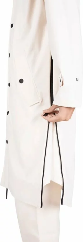 - Kenmerkende ritsen aan de zijkant voor poncho functie