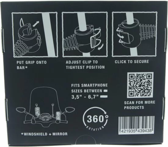 De houder is door middel van een klem makkelijk te bevestigen op het windscherm.