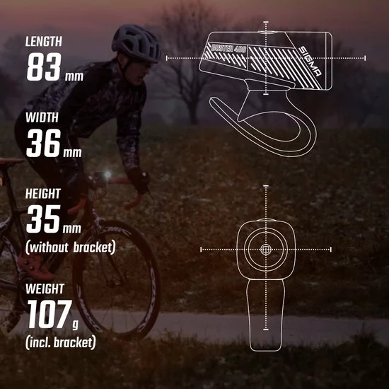 Sigma BUSTER 400 USB LED Fiets Verlichtingset 400 Lumen + Blaze Flash USB Achter Met Remlicht Functie – Li-ion Accu – Oplaadbaar