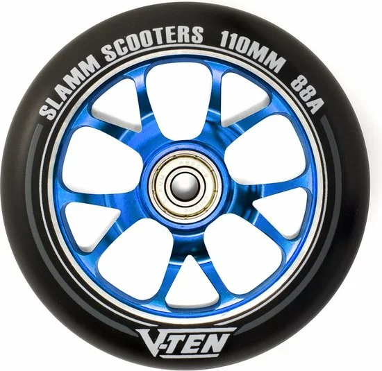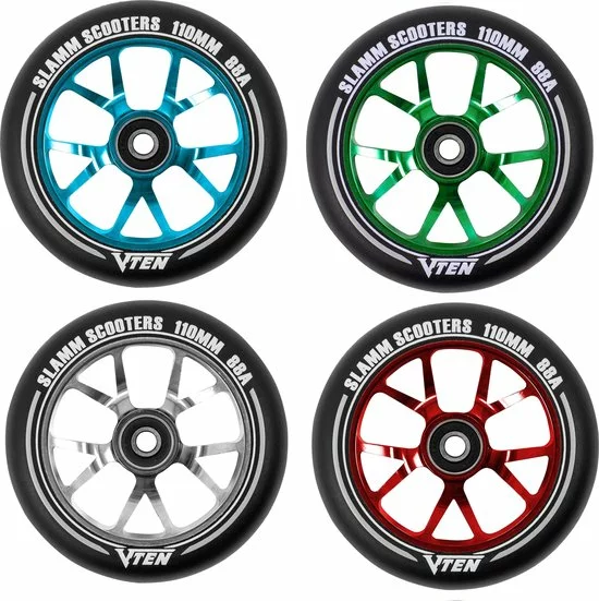 De Slamm 110 mm V-Ten II-wielen zijn nieuw verfijnd, CNC-afgewerkt, wat zorgt voor een nauwkeurige uitlijning van de lagers. Verkrijgbaar in 6 geanodiseerde legering kernkleuren.
