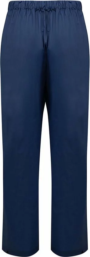 PVC regenbroek. Losse pasvorm met elastische tailleband. Zakopening. Studs op zoom om beenopening aan te passen.