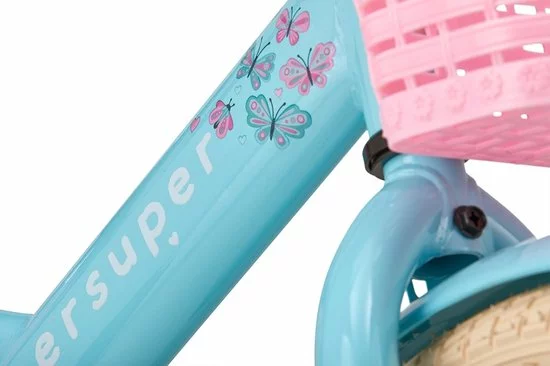 Viva la magic! Terwijl de slingers wapperen in de wind, dragen de vlinders op deze stevige fiets je door jouw magische wereld. Met het zitje neem je jouw favoriete maatje gemakkelijk mee op al je verre reizen. Je spulletjes kunnen in het mandje aan het stuur. The world is #supersuper!