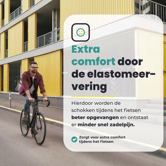 - – Hierdoor worden de schokken tijdens het fietsen beter opgevangen en ontstaat er minder snel zadelpijn.