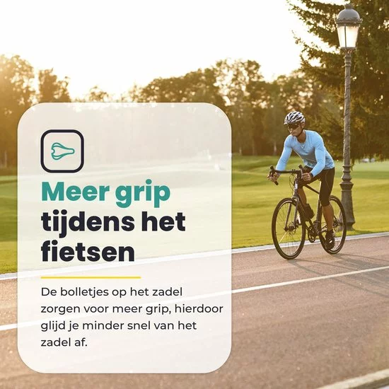 - – Ook zitten er bolletjes op het zadel hierdoor heeft u meer grip, waardoor u minder snel van het zadel afglijdt.